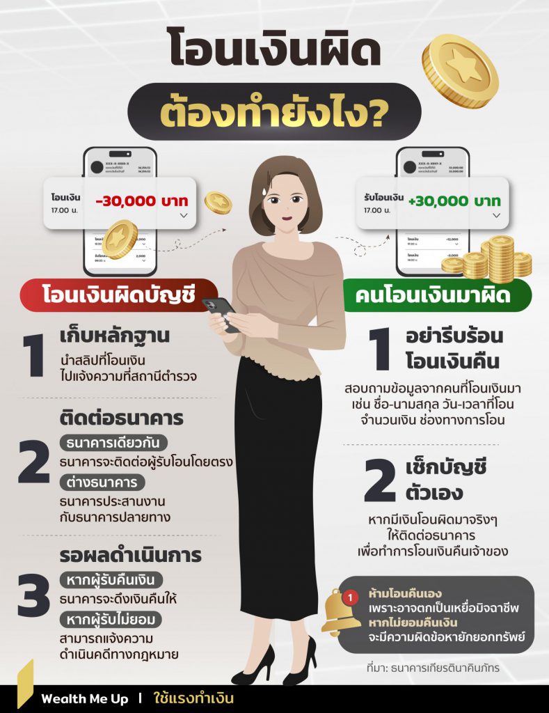 หากมีเงินโอนผิดมาจริงๆ ให้ติดต่อธนาคาร เพื่อทําการโอนเงินคืนเจ้าของ