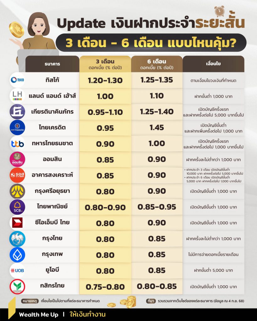 มาเช็กกันเลย! ดอกเบี้ยฝากประจำระยะสั้น 3 เดือน – 6 เดือน…แต่ละที่ให้ดอกเบี้ยเท่าไหร่กันบ้าง?