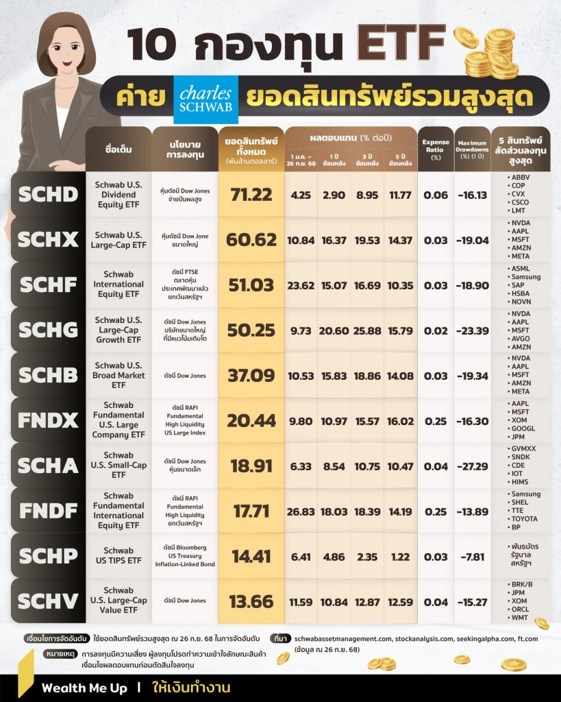 1O กองทุน ETF ค่าย Charles Schwab ยอดสินทรัพย์รวมสูงสุด