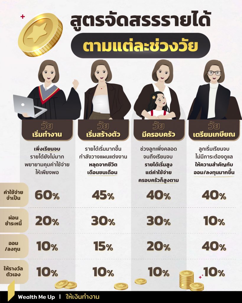 สูตรจัดสรรรายได้ ตามแต่ละช่วงวัย