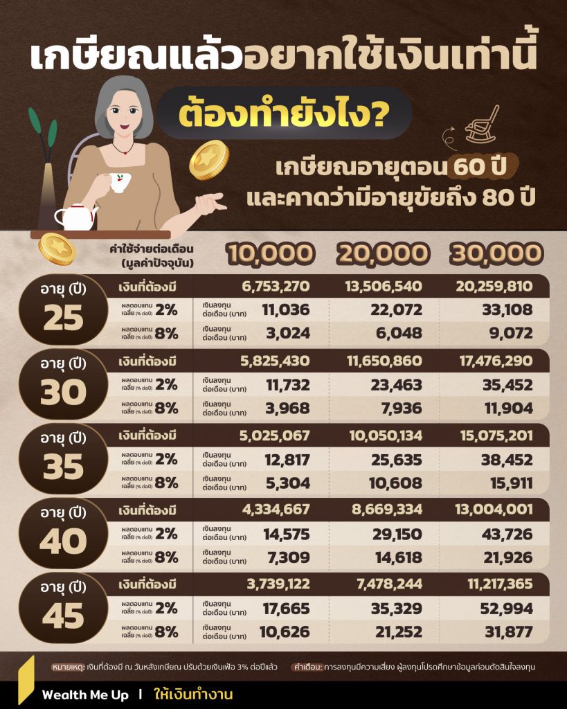 เกษียณแล้วอยากใช้เงินเดือนละ 20,000 บาท 30,000 บาท…จะต้องมีเงินทั้งหมดเท่าไหร่ ลงทุนยังไง? มาดูกัน