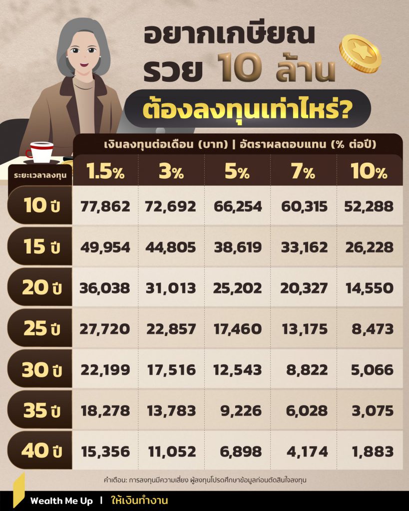 มาลองดูว่าต้องลงทุนเดือนละเท่าไหร่ ถึงจะเกษียณรวยได้