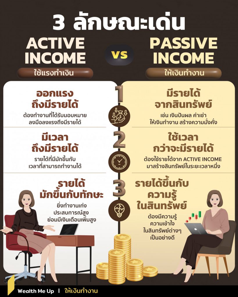 มาดูกันว่า Active Income หรือการ “ใช้แรงทำเงิน” และ Passive Income หรือการ “ให้เงินทำงาน” มีลักษณะเด่น และแตกต่างกันอย่างไรบ้าง?