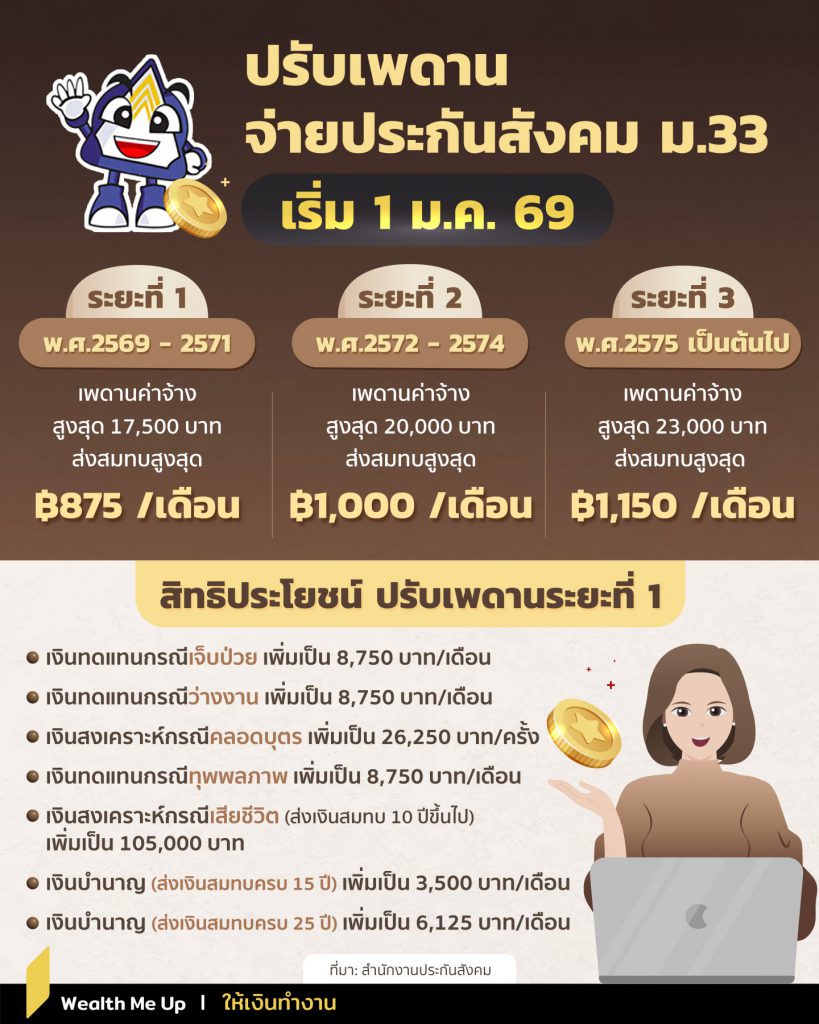 เริ่มปีหน้าแล้ว ประกันสังคมปรับเพดานใหม่ เตรียมตัวจ่ายเพิ่ม! พร้อมความคุ้มครองที่มากกว่าเดิม สิทธิประโยชน์ปรับเพิ่มขึ้นเท่าไหร่บ้างมาดูกันเลย