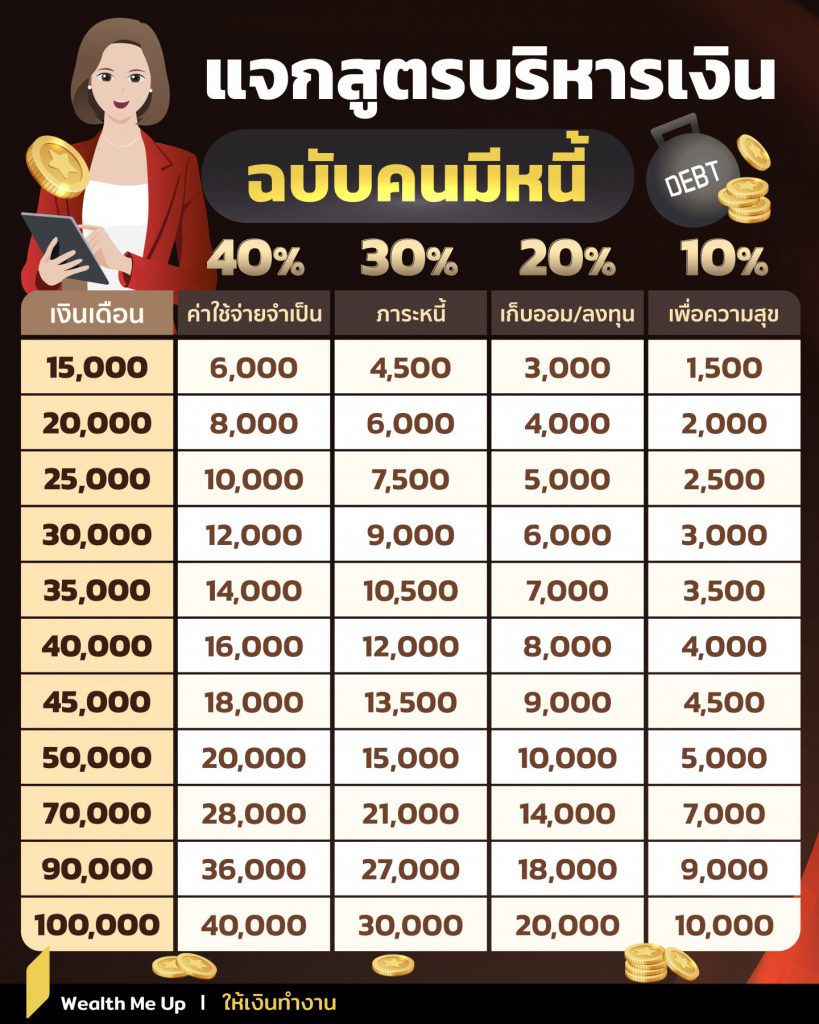 บริหารเงินยังไง? ให้มีใช้ มีเก็บ ฉบับคนมีหนี้…มาดูสูตรจัดการเงิน 40:30:20:10 กันเลย