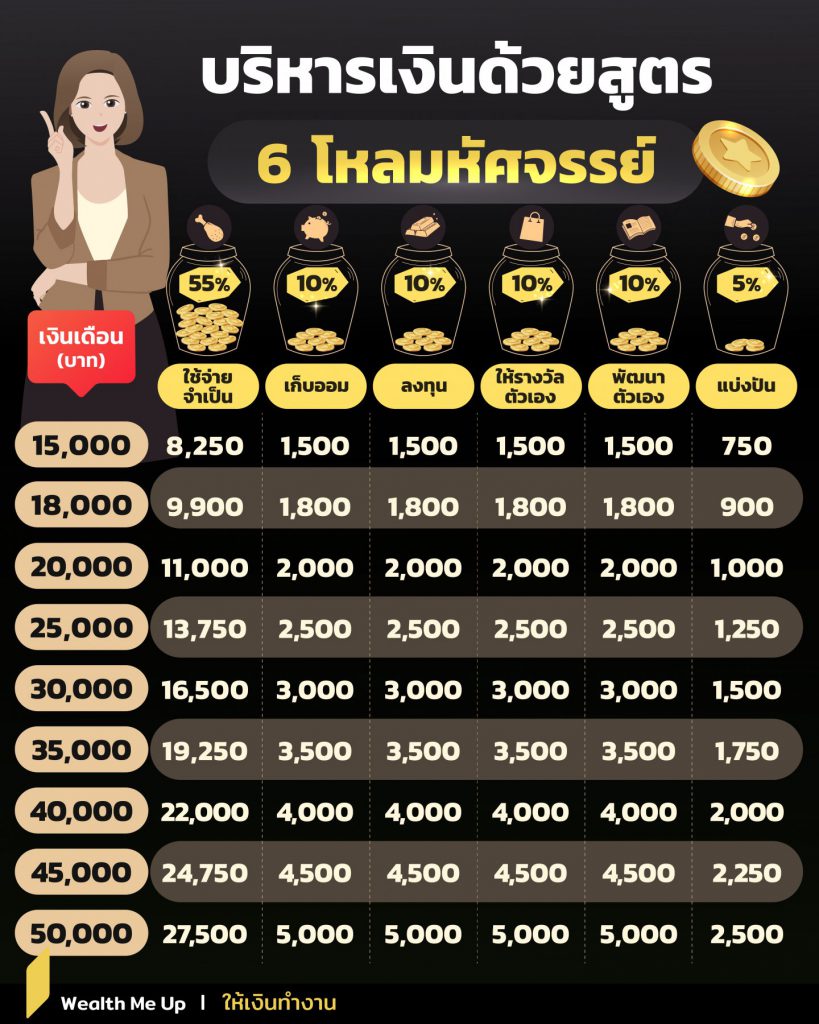 ลองนำเทคนิค 6 โหลมหัศจรรย์นี้ไปจัดการเงินแต่ละเดือนของเรา และสามารถปรับสัดส่วนให้เหมาะสมกับแต่ละคนได้
