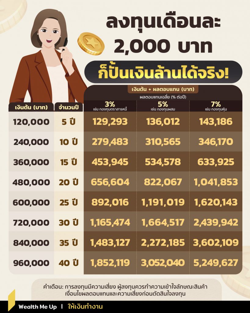 เงินลงทุนเดือนละ 2,000 บาท ใช้ ‘เวลา + วินัย + ดอกเบี้ยทบต้น’