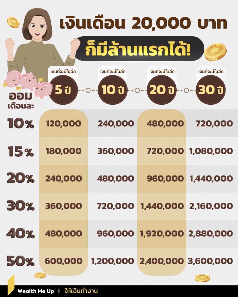 มาดูว่าเงินเดือน 20,000 แบ่งออมยังไงถึงจะมีเงินหลักแสน–หลักล้าน